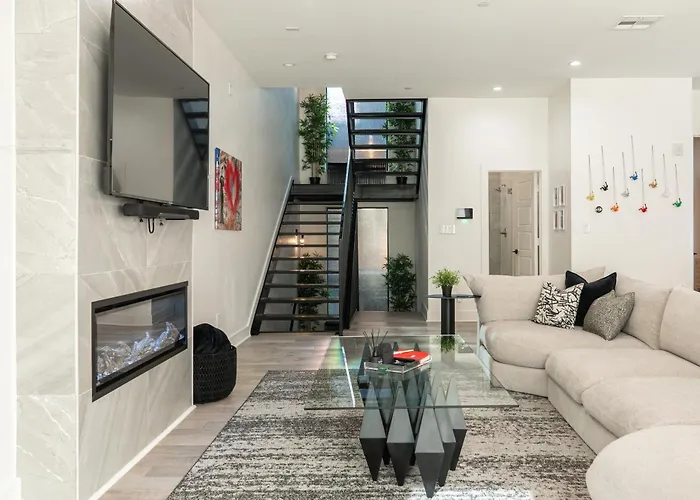 Nestled in the vibrant Bishop Arts District, the Banksy-Inspired Urban Home in Bishop Arts serves as a canvas of creativity and modern comfort. This unique accommodation offers an eclectic blend of artistic flair and contemporary amenities, ensuring a memorable stay for every guest. Just 15 km from the bustling Dallas Love Field Airport, this urban haven provides both accessibility and an inspiring atmosphere. Guests can choose from a range of stylishly appointed rooms, each reflecting a touch of local art while providing a serene retreat amidst the city buzz. The accommodations are designed with modern furnishings and comforting decor, making each space feel like a stylish sanctuary. Whether you're here for a weekend getaway or an extended stay, the rooms promise relaxation with thoughtful amenities and stunning views of the vibrant surroundings.